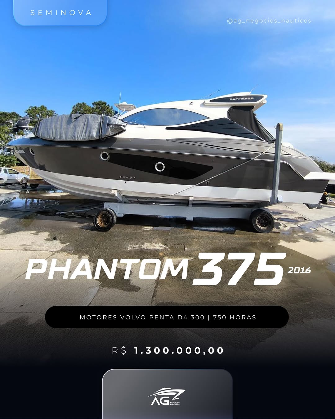 PHANTOM 375 – 2016 Motores Volvo Penta D4 300 | 750 horasGerador Onan | 1200 horas • Geleira no Leia Mais »
