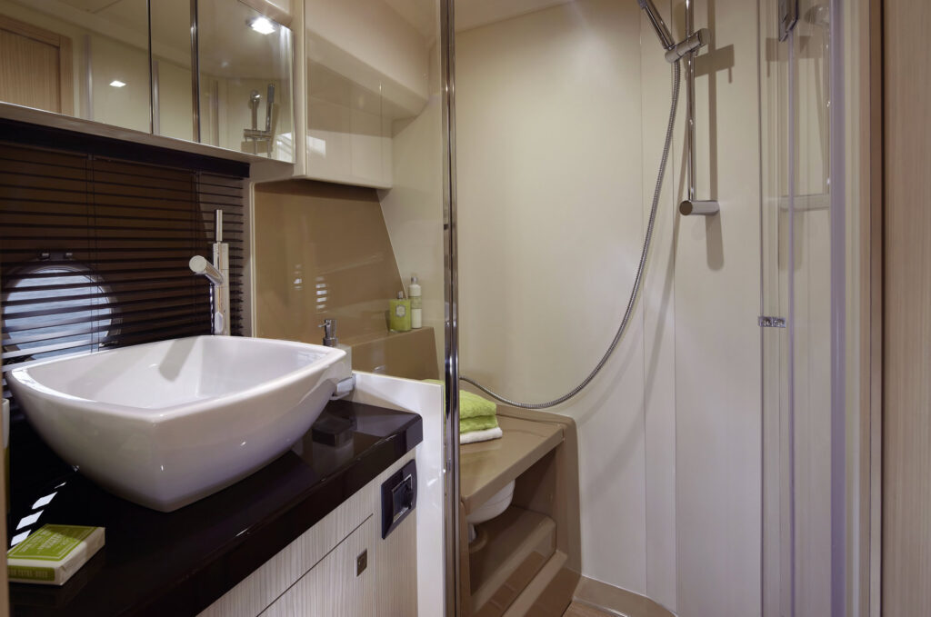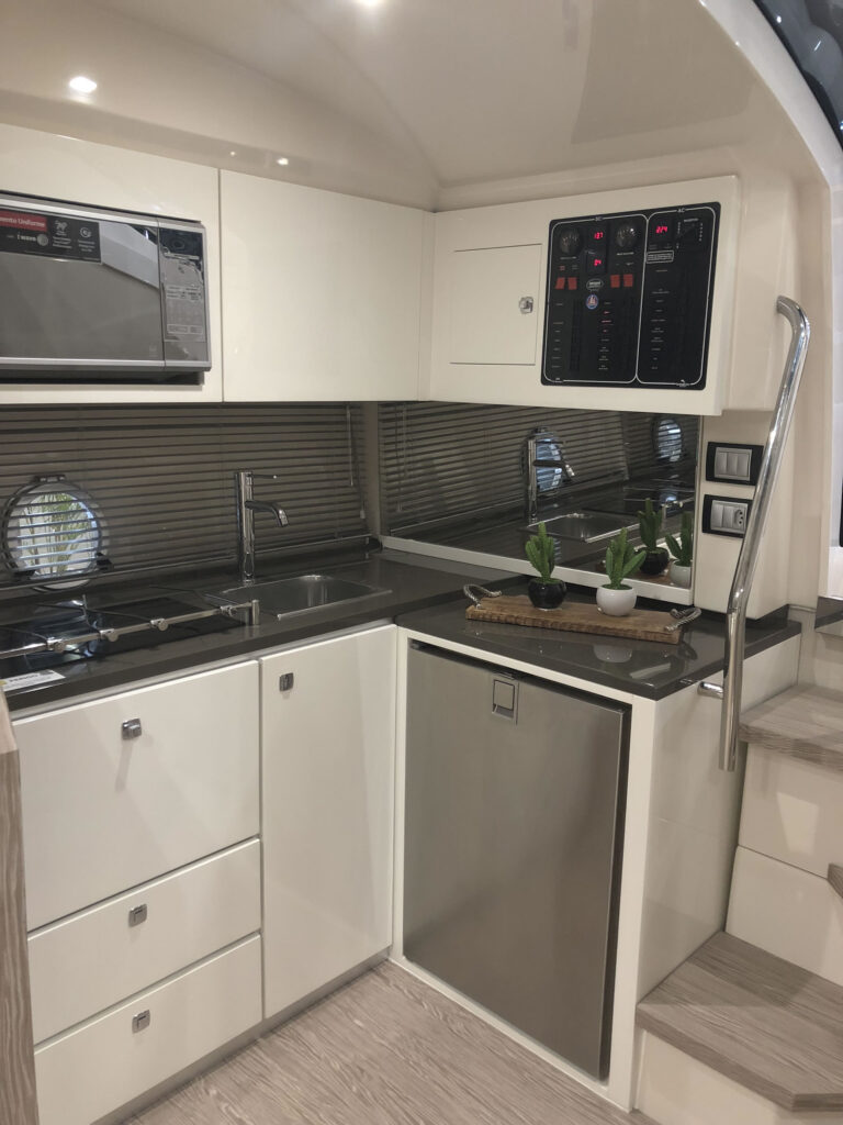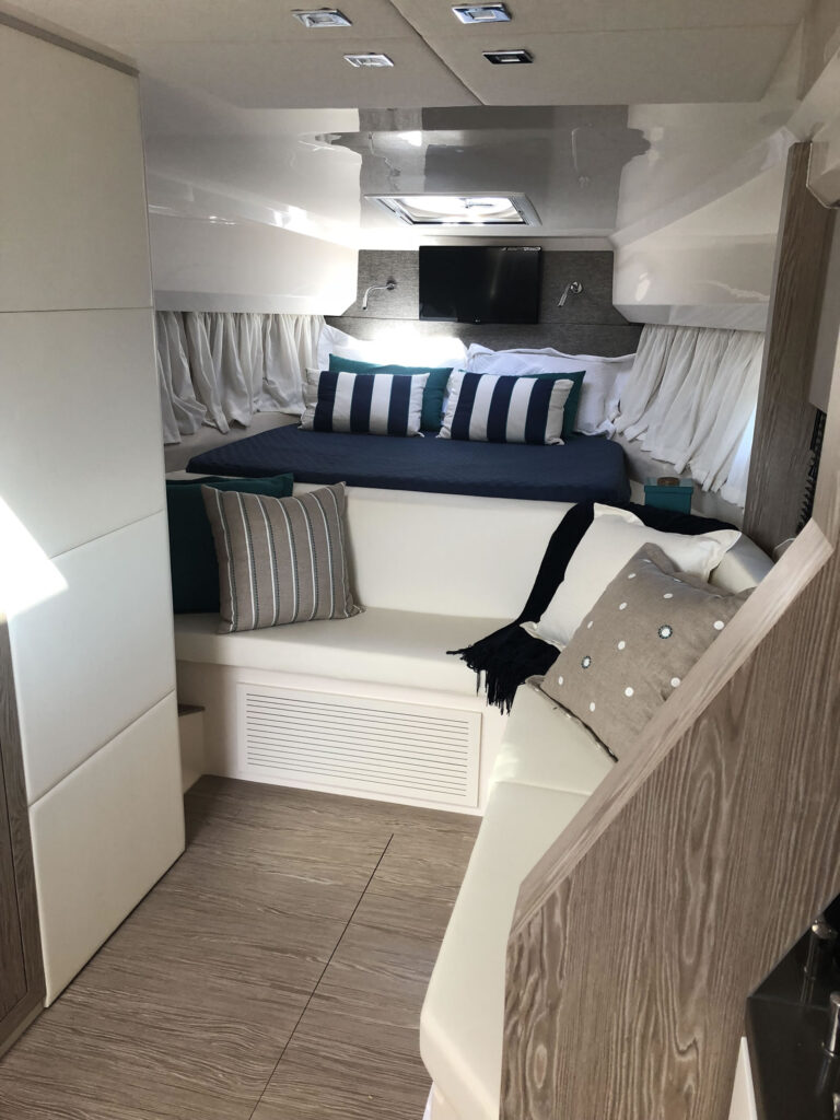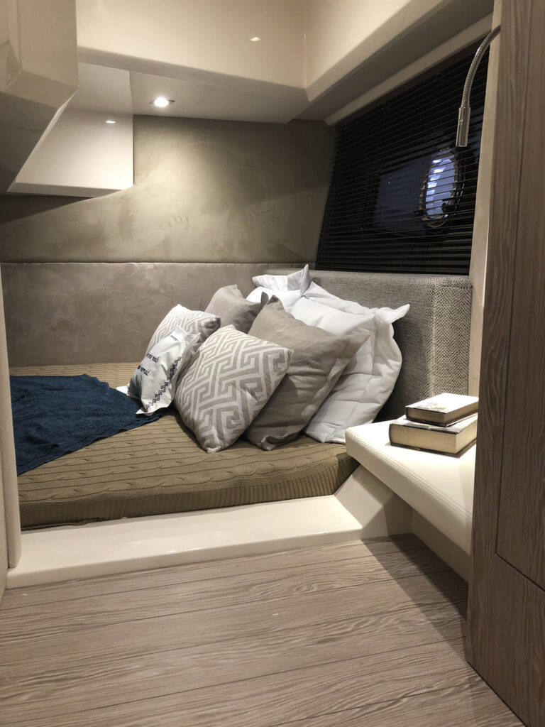 O cockpit é iluminado e com excelente iluminação natural e equipado com um moderno sistema de hard top com abertura elétrica. O modelo oferece também um inteligente conceito modular, onde é possível dividir o salão criando duas cabines com acessos independentes para a cozinha e o banheiro.