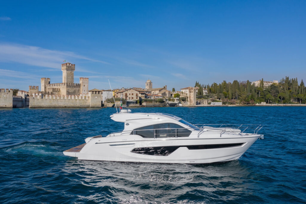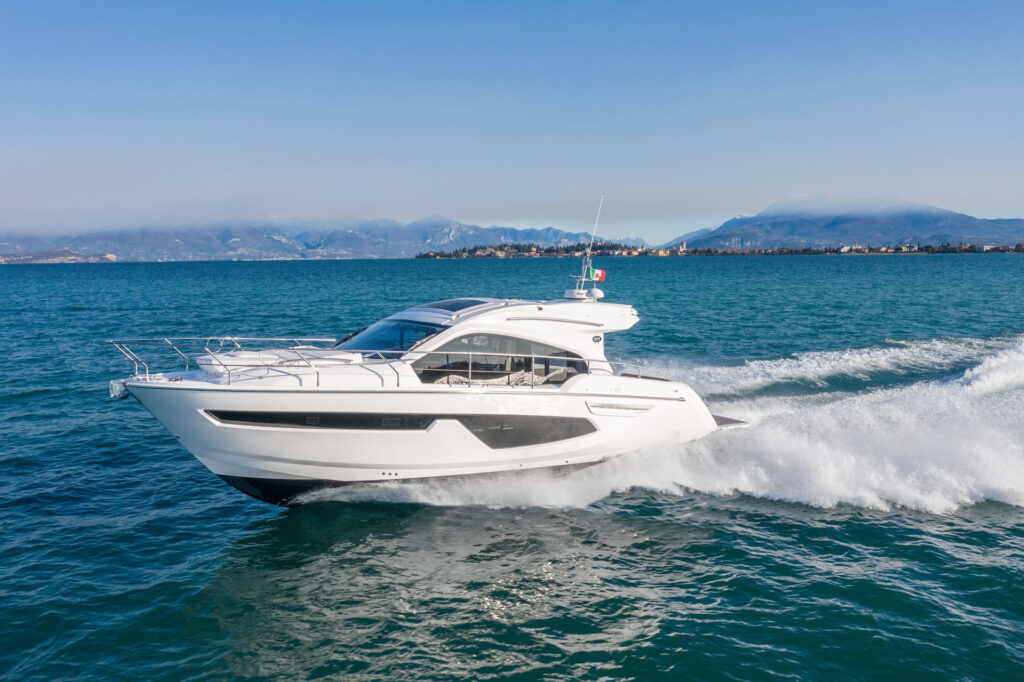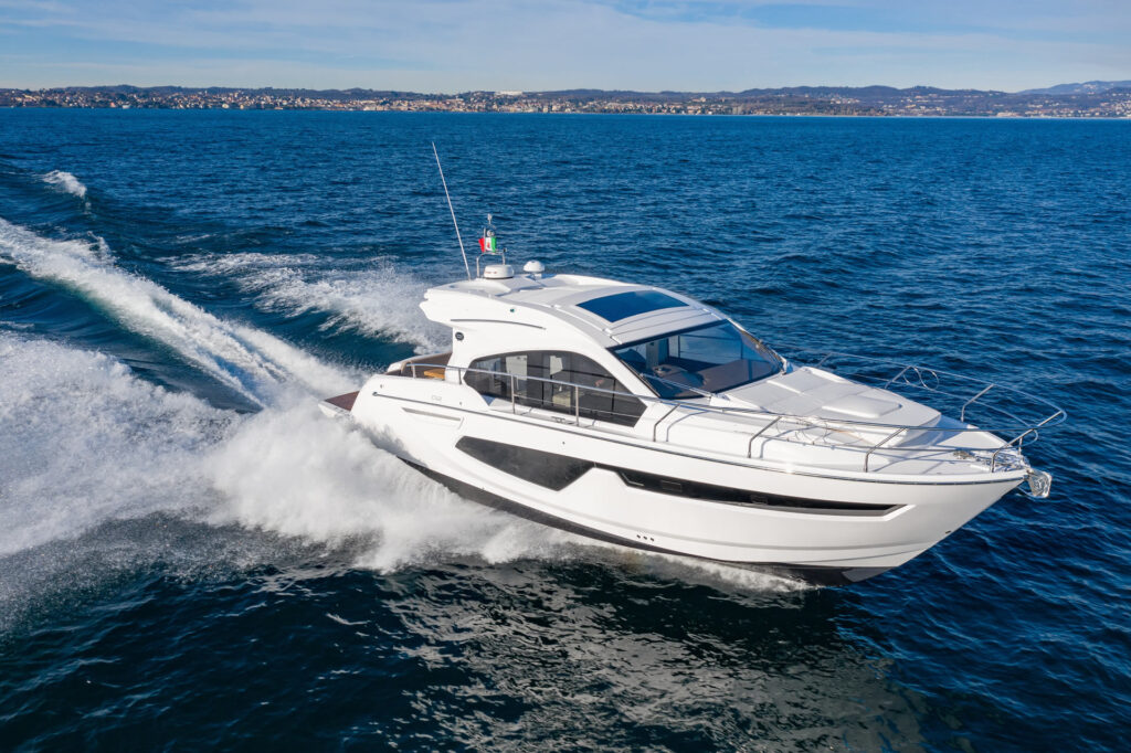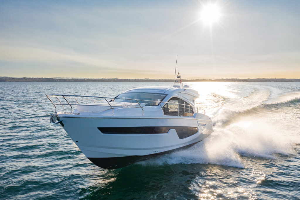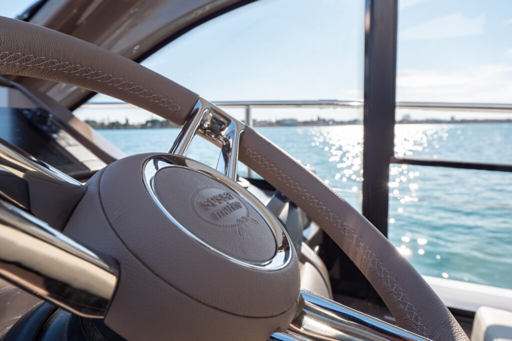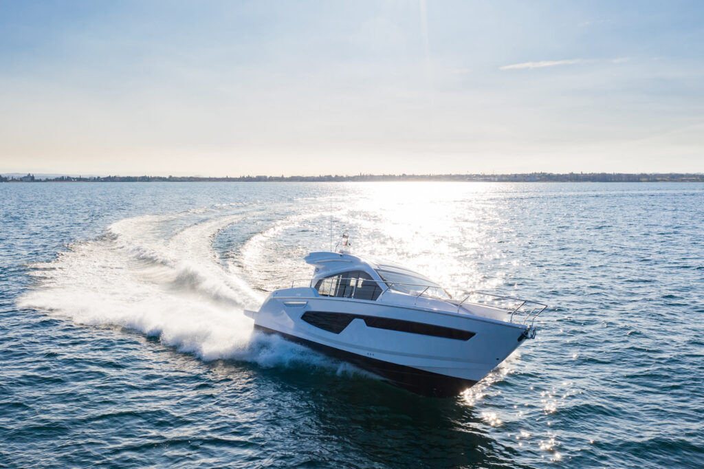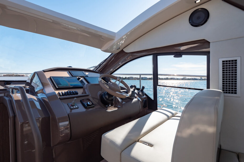 Como as outras embarcações da linha Cruiser, também possui um moderno hardtop com abertura elétrica para assegurar fácil manuseio e conforto durante a navegação.
