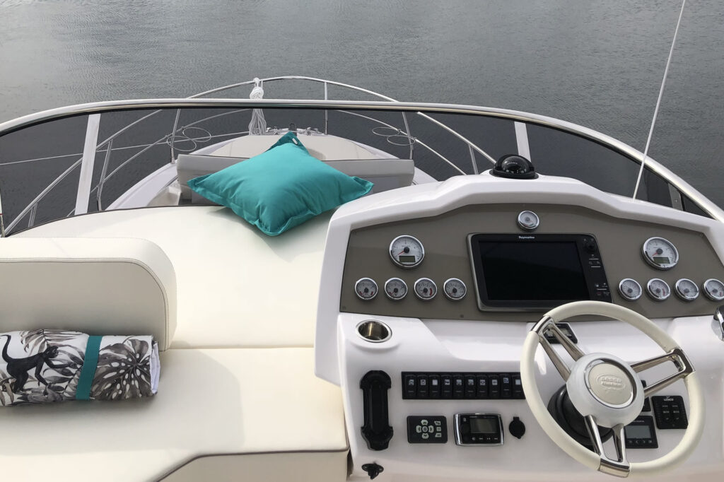 Outra característica marcante no modelo é seu alto desempenho. A F42 é a primeira em sua classe preparada para receber motorização Volvo IPS. Um barco perfeito para curtir em família durante todo o ano.