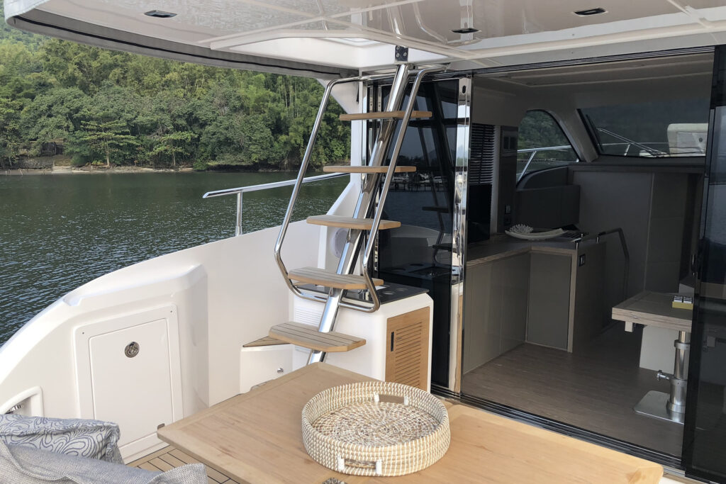 • Plataforma de popa submergível com escada de popa dobrável e escada articulável para o cockpit
