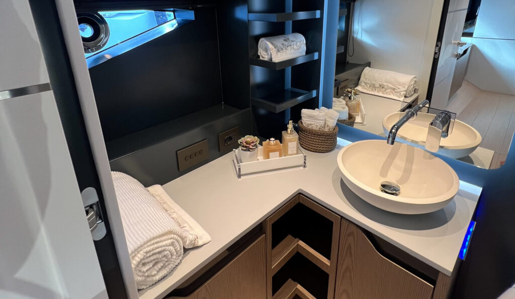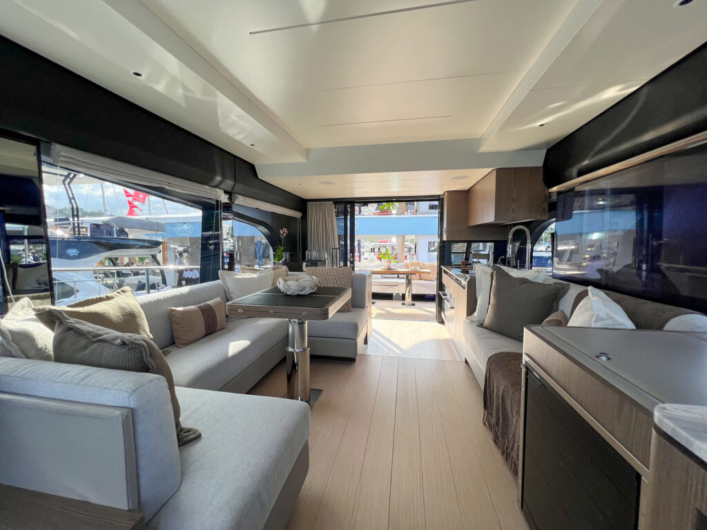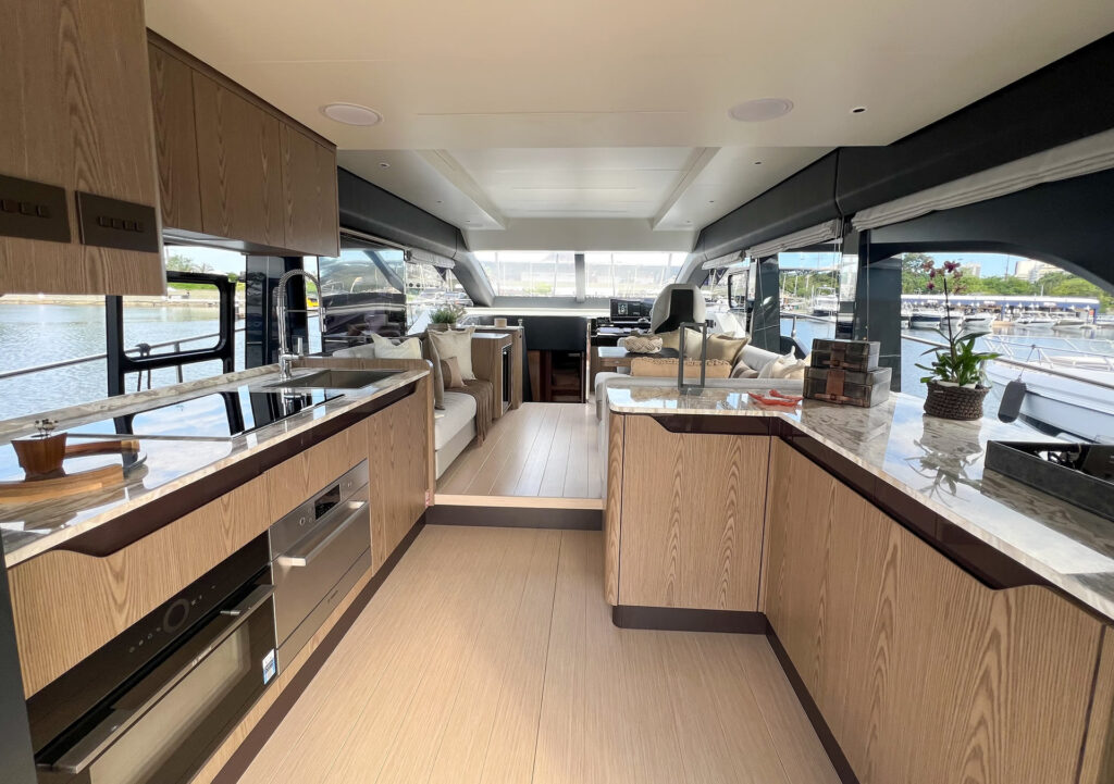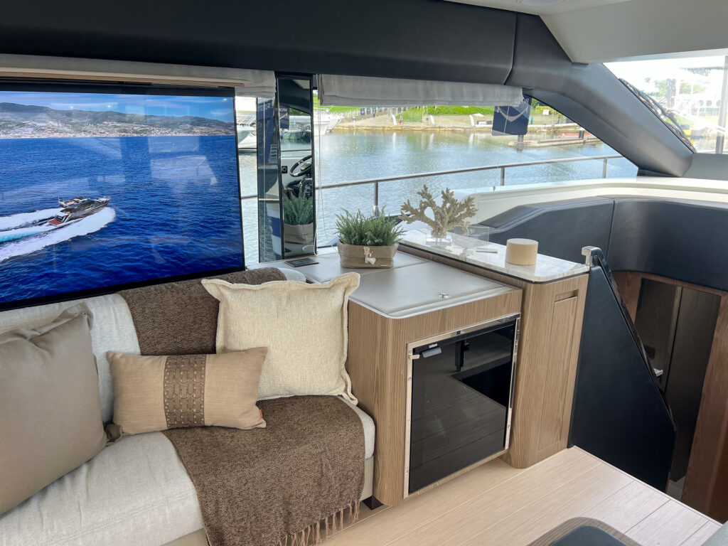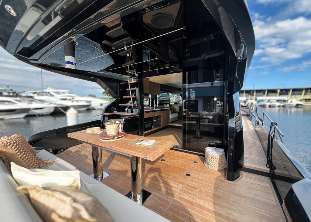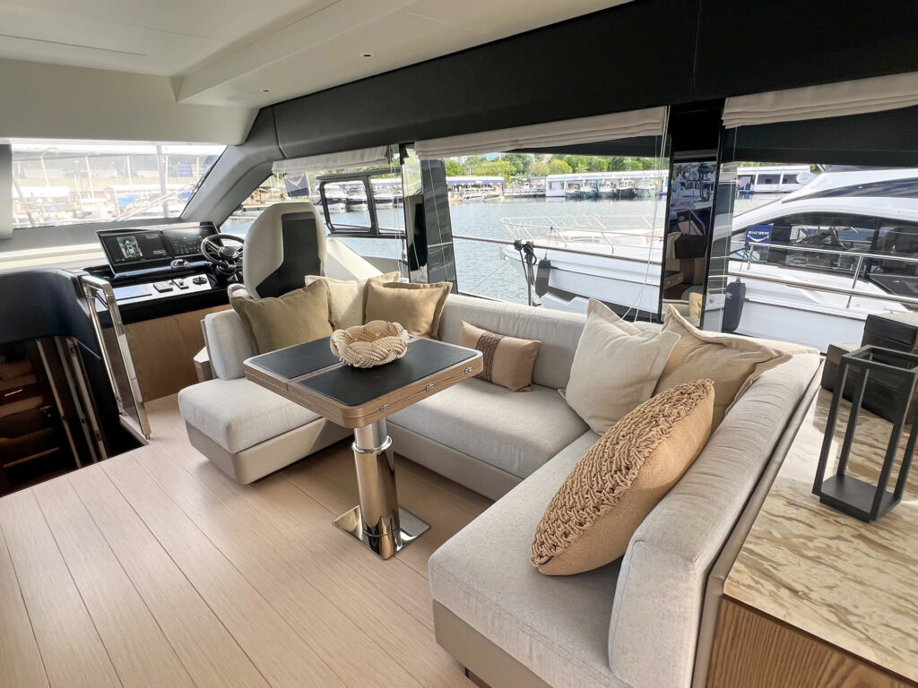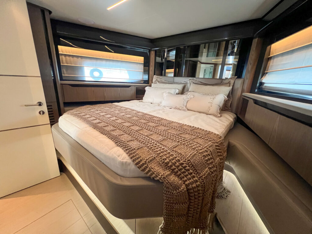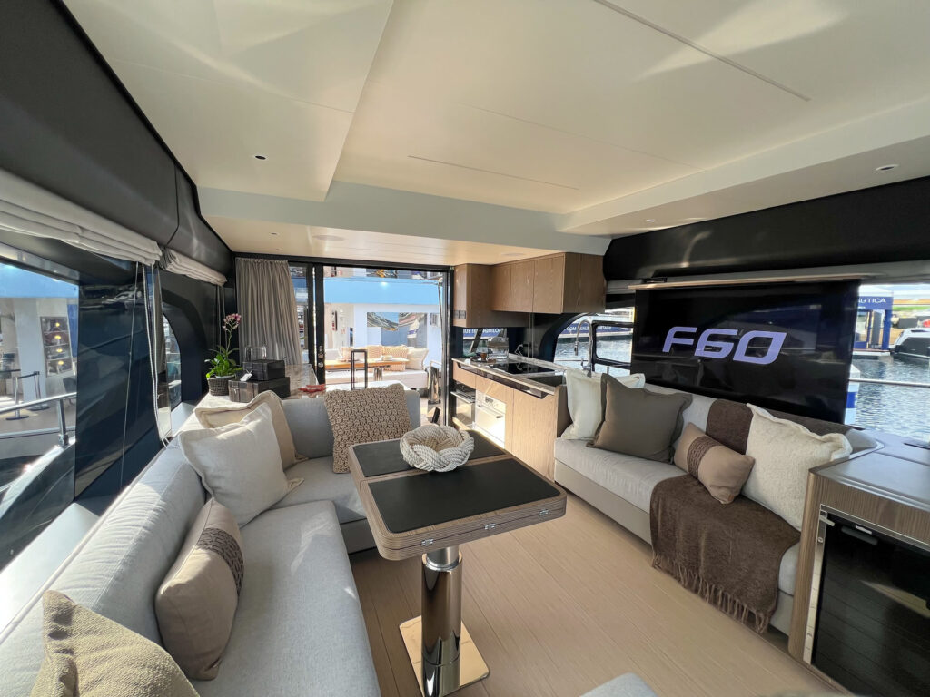 Desenvolvida em parceria com o estúdio italiano CentroStile Design, o projeto privilegia luz natural, com amplos espaços e integração entre os ambientes. Com motorização Volvo Penta IPS 950, a F60 alia potência à eficiência energética e conta com avançados sistemas de automação e monitoramento, tudo para garantir mais tempo de qualidade a bordo com todo o conforto de uma casa.